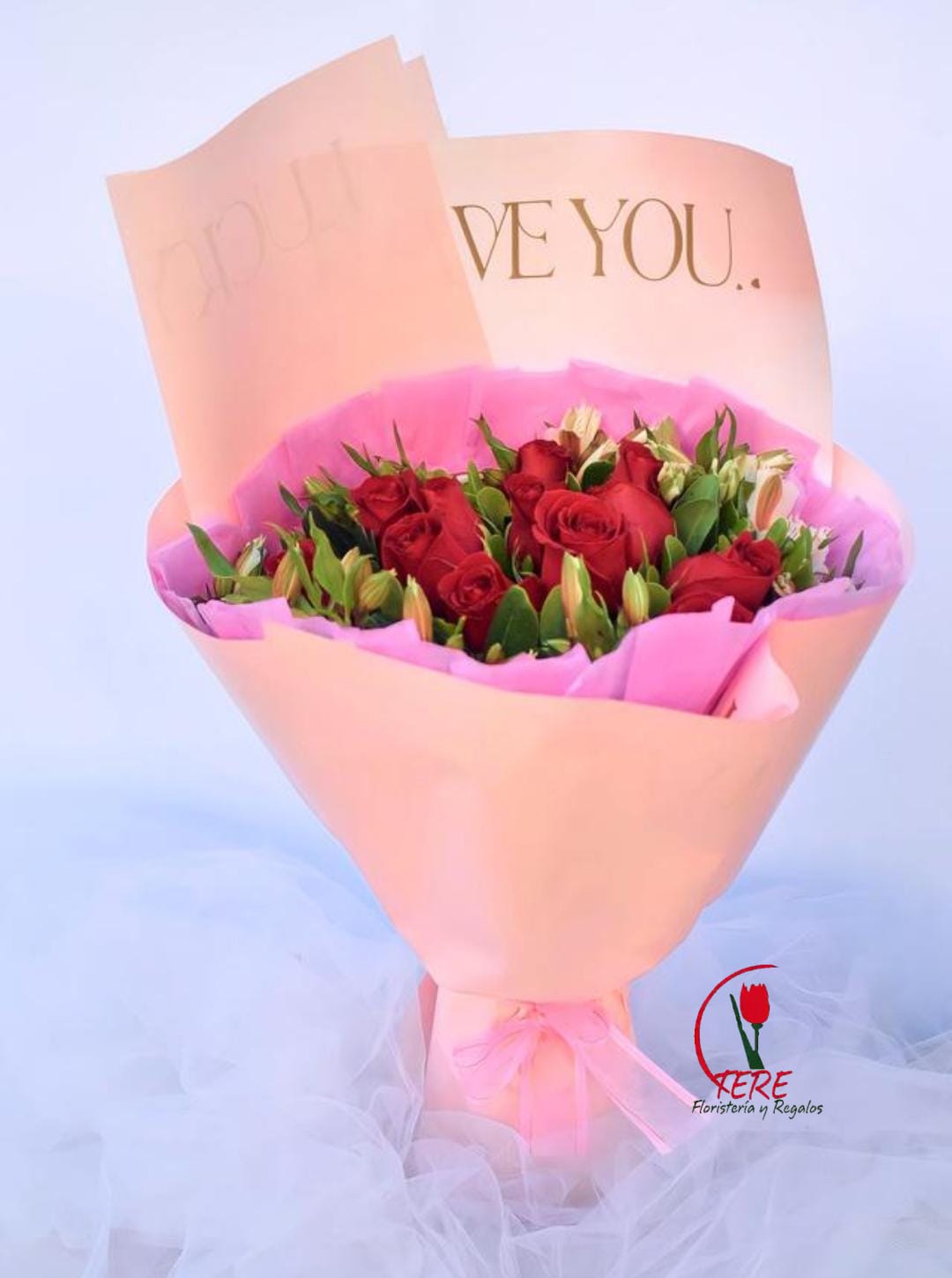 Media docena de rosas frescas junto a follaje de temporada
