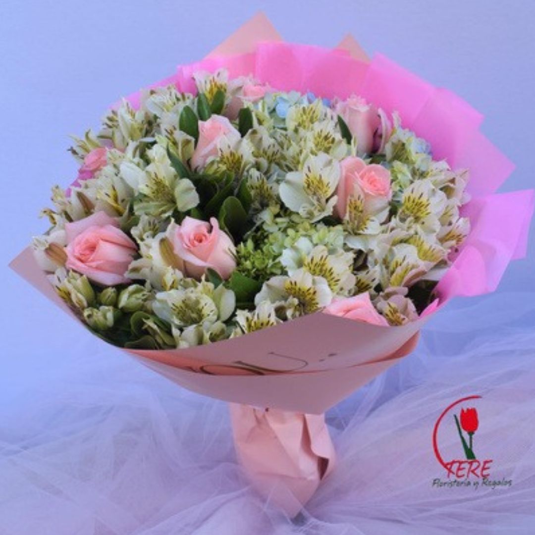 Media docena de rosas acompañada de flores de temporada